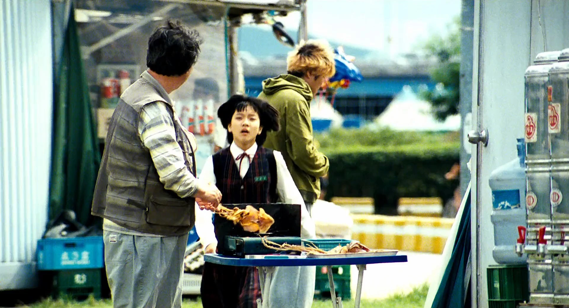Song Kang-ho as Park Gang-du, Byun Hee-bong as Park Hie-bong, Park Hae-il as Park Nam-il, Bae Doona as Park Nam-joo, Ko A-sung as Park Hyun-seo, Oh Dal-su as The Monster (voice), Lee Jae-eung as Se-jin, Lee Dong-ho as Se-joo, Yoon Je-moon as Homeless Man, Yim Pil-sung as Fat Guevara, Kim Roi-ha as Yellow Suit at Funeral, Koh Soo-hee as Hostage nurse, Kim Hak-sun as Civilian Military Kim, Scott Wilson as Douglas, Brian Rhee as Young Korean Doctor, Paul Lazar as American Doctor, David Anselmo as Donald, Baek Do-bin as Fumigation Truck Skinny Man, Martin Lord Cayce as U.S. Senator (uncredited), Choi Dae-sung as Man from Duck Boat (uncredited), Choi Doo-yeong as Man on Blind Date (uncredited), Choi Jae-sup as Detective Agency Subordinate 1 (uncredited), Jung Seo-yoon as Woman with Long Hair (uncredited), Philip Hersh as Additional Voices (voice) (uncredited), Jeong In-gi as Isolation Ward Doctor (uncredited), Jeong Hyeong-Ho as 4th Mat 3 (uncredited), Ji Ha-geon as Camera Phone Man (uncredited), Jung Kang-hee as Mr. Yoon's Employee (uncredited), Kim Bi-bi as Isolation Ward Nurse 1 (uncredited), Kim Choo-wol as Woman crying (uncredited), Kim Da-yeon as 5th Mat Woman (uncredited), Kim Hyo-sun as Quarantine Hospital Nurse 2 (uncredited), Kim Jin-seon as Woman from Couple (uncredited), Kim Nan-hee as Woman from Duck Boat (uncredited), Kim Sang-jo as Old Security Guard (uncredited), Kwon Bang-hyeon as Bride-to-be (uncredited), Kwon Byung-gil as Doctor from Isolation Ward 1 (uncredited), Kwon Hyeok-Pung as Fisherman 1 (uncredited), Lee Dong-yong as 4th Mat 2 (uncredited), Lee Eung-jae as Man from Couple (uncredited), Lee Hoon-jin as Fat Man (uncredited), Lee Jong-yoon as 4th Mat 1 (uncredited), Lee Seung-jin as Girl's Father (uncredited), Min Kyung-jin as Altar Security (uncredited), Moon Hee-ra as Camera Phone Woman (uncredited), Clinton Morgan as Agent Yellow (uncredited), Park Jeong-gi as Fumigation Truck Dyed-hir Man (uncredited), Park Kyeong-mok as Groom-to-be (uncredited), Park No-shik as Inquiry Officer, Ra Mi-ran as Woman Stomping Her Feet (uncredited), Seo Ha-neul as Exchanged Girl (uncredited), Shin Seung-ri as Donald's Girlfriend (uncredited), Shin Hyun-jong as Mr. Yoon's Friend (uncredited), Son Young-soon as Grandmother from Bus (uncredited), Son Jin-ho as Doctor from Isolation Ward 2, Song Kyeong-ha as Woman on Blind Date (uncredited), Yoo Seung-mok as Taxi Driver, Yoo Yeon-soo as District officer Mr. Jo (uncredited), Seo Young-ju as Protester, Ko Chang-seok as Nurse, Park Jin-woo as Isolation Ward Constable (uncredited)